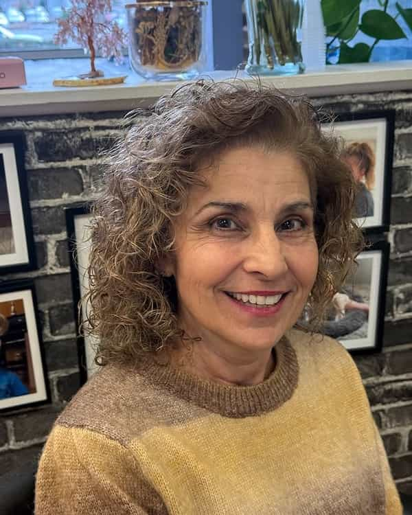 The mid-length curly haircut is a bold, fun style that celebrates natural curls. Its 80s-inspired volume gives the hair a lively, bouncy look, perfect for making a statement.