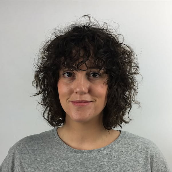 Maintaining this look requires a light curl cream to keep the bangs and curls blended. This ensures they do not frizz or lose definition. The result is a fun, versatile hairstyle suitable for casual and semi-formal occasions alike.