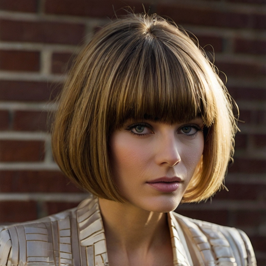 The feathered bob with blunt bangs merges classic 80s texture with a modern twist. The feathered layers create movement and lightness, while the blunt bangs add bold definition.