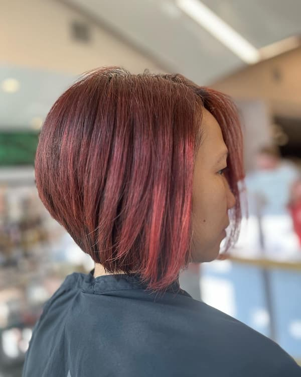 A super angled bob is defined by the dramatic difference between the shortest and longest points of the cut. When paired with a bold red color, the hairstyle becomes a true statement piece. The sharp angles create a contemporary and edgy look, while the vibrant color adds energy and charm, making it one of the most eye-catching variations of the angled bob.