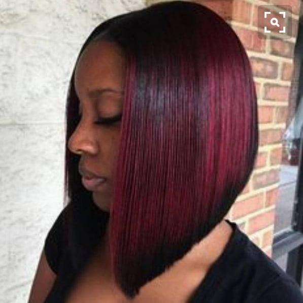 Bold color combinations, such as red and black, can transform a standard angled bob into a striking, fashion-forward style. The contrasting tones highlight the angles and layers of the haircut, giving it depth and dimension. This edgy approach is perfect for women looking to make a statement with their hairstyle while maintaining the elegance of a classic bob shape.
