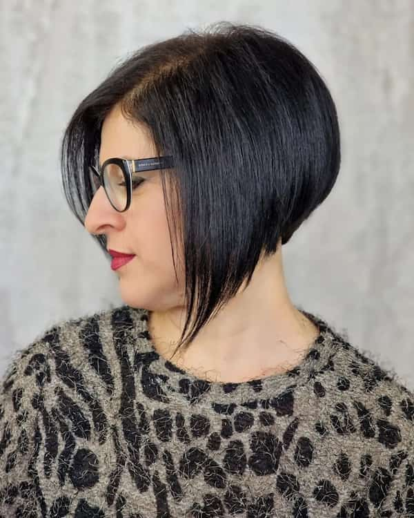 Even women with thin hair can wear an angled bob beautifully. Strategic layering and smooth styling give the illusion of volume while maintaining the cut’s signature angles. A side parting adds dimension and complements the hairstyle, making it appear fuller and more dynamic. This style proves that hair thickness is not a barrier to achieving a flattering angled bob.