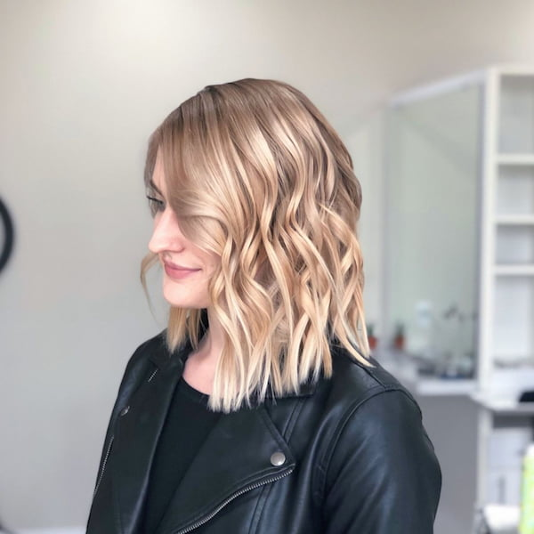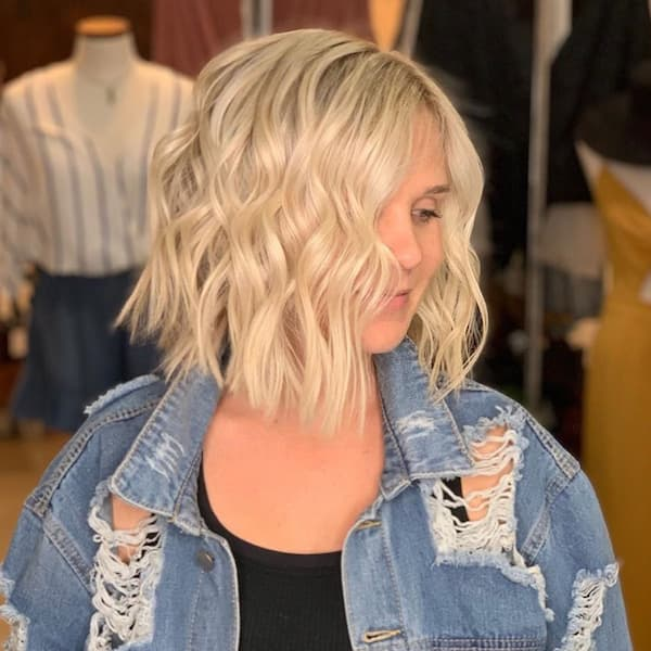Adding waves to a blonde angled bob creates a soft, romantic style that is both modern and timeless. The waves accentuate the angles and layers, giving the hair volume and bounce. This style is ideal for casual and formal occasions alike, providing an effortlessly chic and elegant appearance.