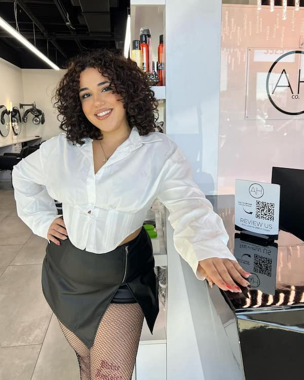 A curly bob offers a trendy, manageable hairstyle ideal for casual beach days or lively beach parties. This style highlights your curls’ natural texture while providing a fashionable, low-maintenance look.