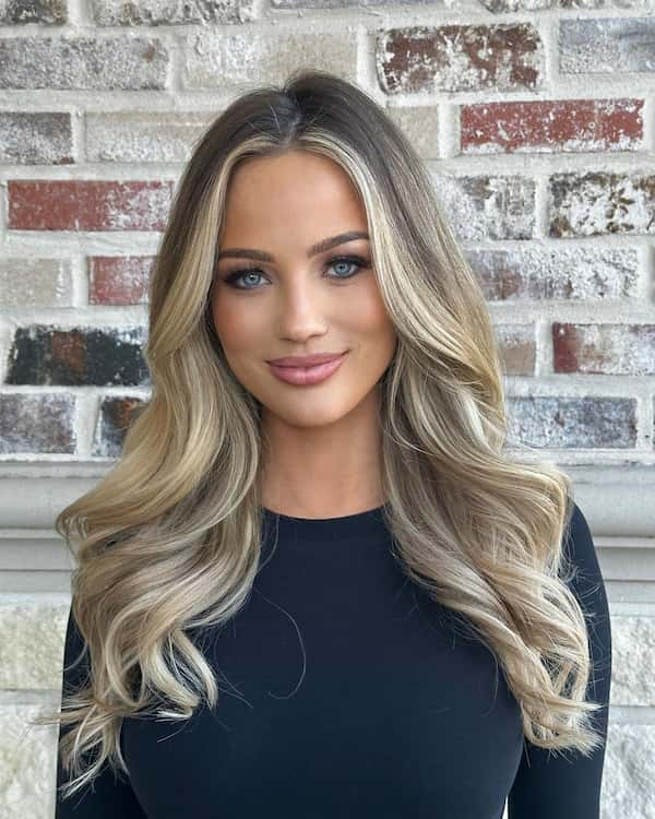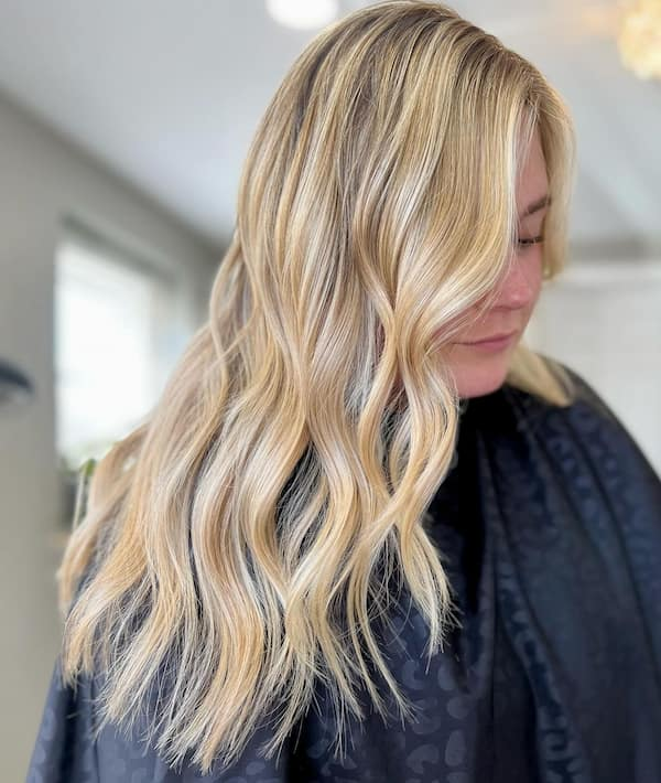 Perfect for long hair, this blonde wavy haircut gives off natural, sun-kissed vibes. The loose waves add movement and dimension while exuding a relaxed and playful look that’s ideal for a beach day or vacation.