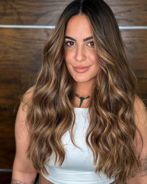 Long, flowing waves create a goddess-like beach aesthetic. Simple to maintain yet effortlessly glamorous, this style is perfect for photo-ready summer looks.