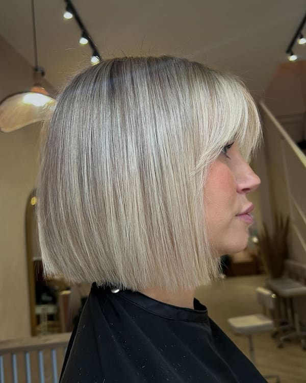 A stylish and classic haircut that radiates sophistication and modernity is a blonde bob with bangs. A blonde bob with bangs is one of the most attractive bob hairstyles that is always in trend. By framing your face, adding bangs to your blonde bob offers you a little individuality and charm.