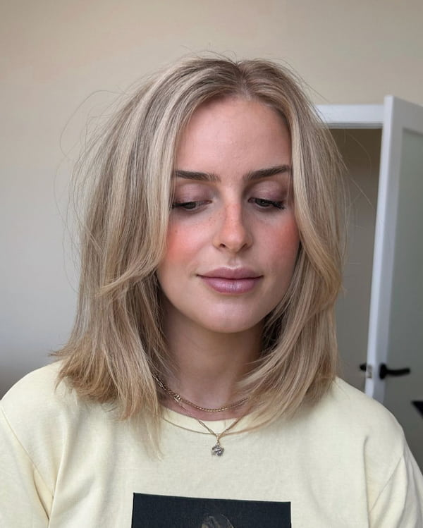 The glam bob with wispy layers is sophisticated and airy. The light layers create a soft, feminine silhouette that enhances movement and adds a glamorous finish, ideal for evening events or formal occasions.
