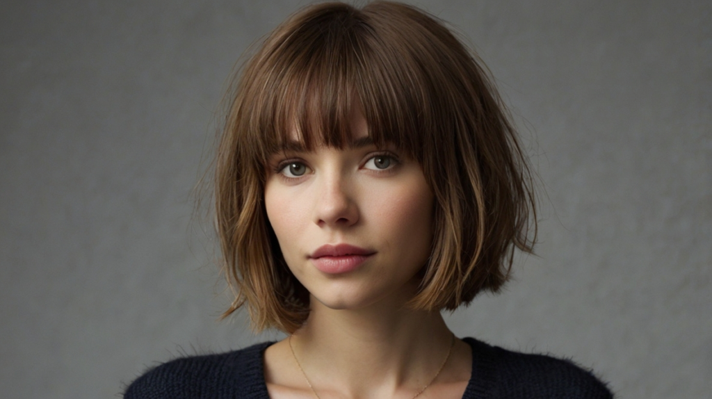Adding texture to a blunt bob prevents the style from appearing flat while maintaining its structured appeal. The straight bangs provide balance and definition, tying the entire look together. This hairstyle offers personality and dimension, making it ideal for those who want a lively yet polished haircut.