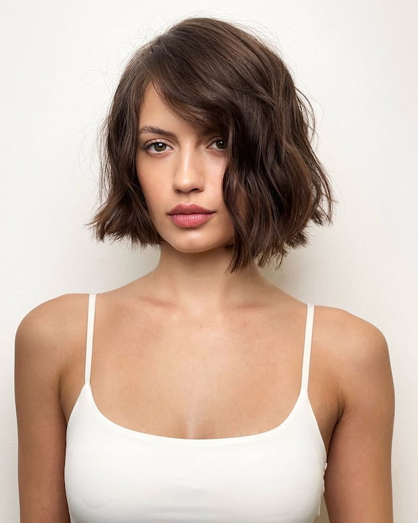 16. Bob with Messy Side-Swept Bangs