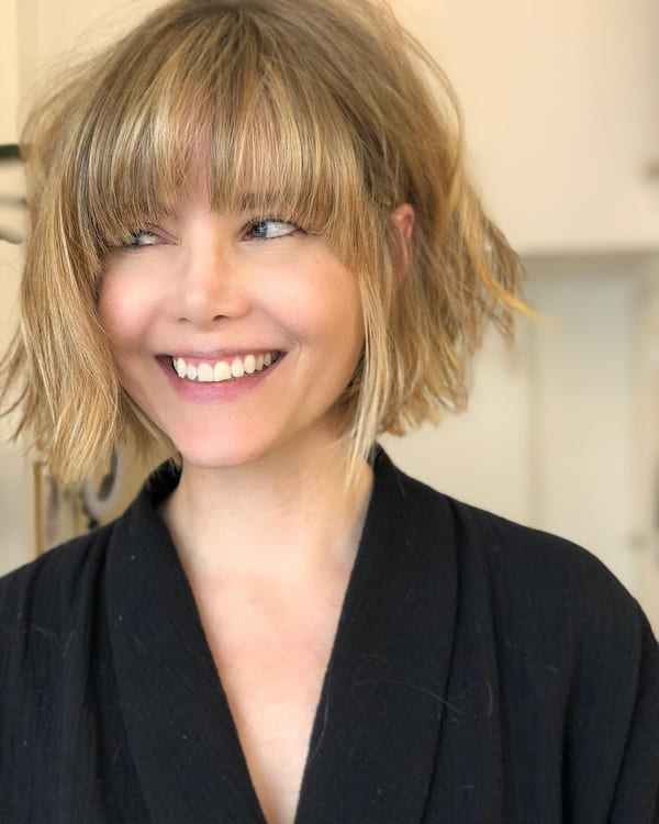 13. Textured Messy Bob with Blunt Bangs