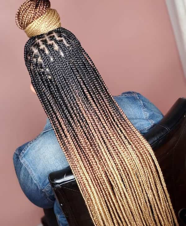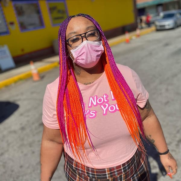Regular maintenance, including scalp care and nighttime protection, helps keep the braids looking vibrant and neat. Multi-colored box braids are ideal for anyone who enjoys creative and expressive hairstyles.