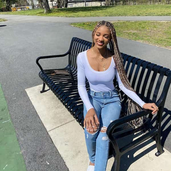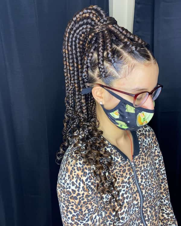 Boho box braids combine classic braiding with loose, curly strands for a soft and romantic look. Curly extensions are added throughout or at the ends to create texture and movement. This style blends structure with a carefree finish. Because of the curly pieces, extra care is needed to prevent tangling. Applying lightweight mousse and gently separating curls can help maintain definition. Nighttime protection is especially important to preserve the curls. Boho box braids are popular for events, vacations, and those who love a slightly undone yet polished appearance. The mix of braids and curls creates a versatile and eye-catching hairstyle.
