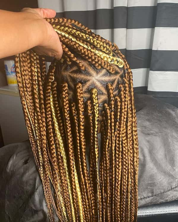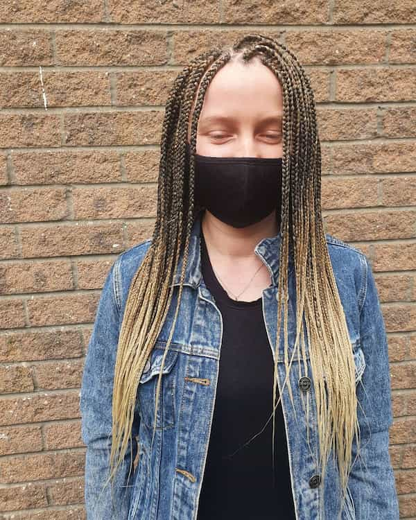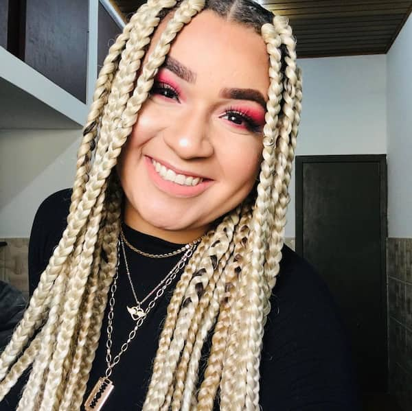 Blonde box braids create a bold, confident look suitable for various occasions.
