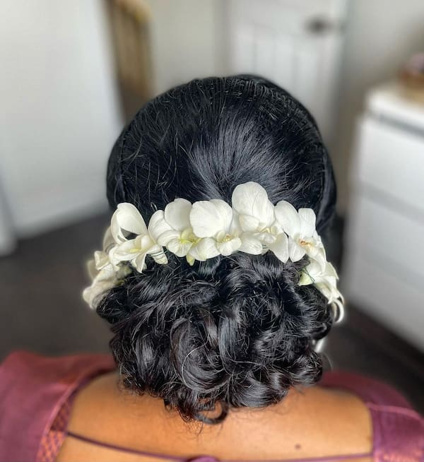 Low Bun Enhanced with Flowers