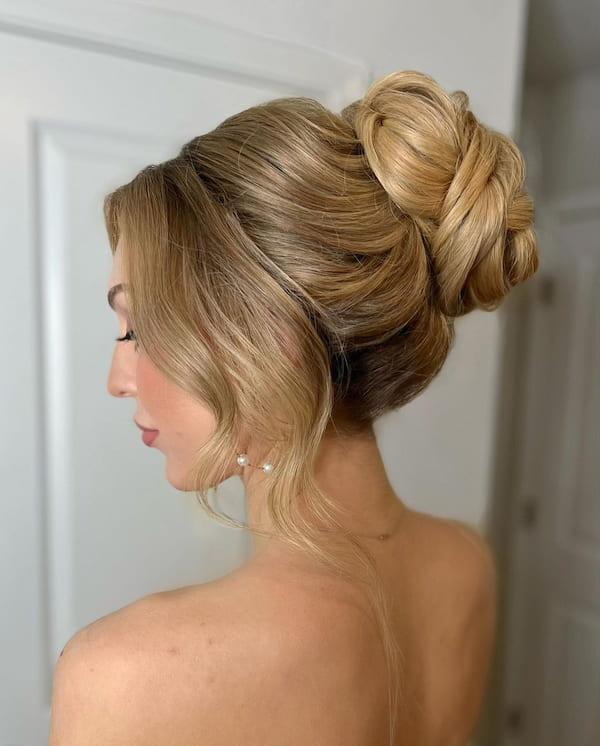 A low bun is perfect for brides or formal occasions when extreme volume isn’t necessary. This style exudes sophistication while remaining understated, making it suitable for intimate weddings or classy events where simplicity meets elegance.