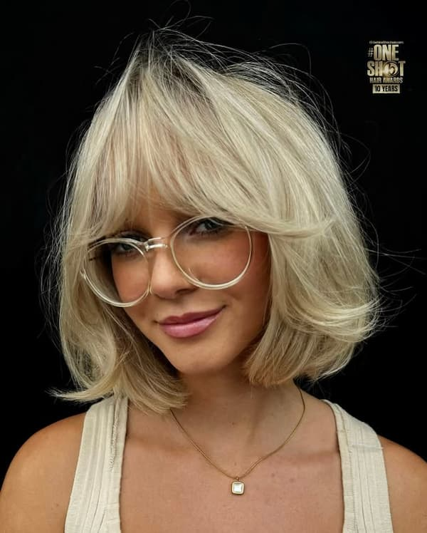 Glam Blonde Bob with Bangs