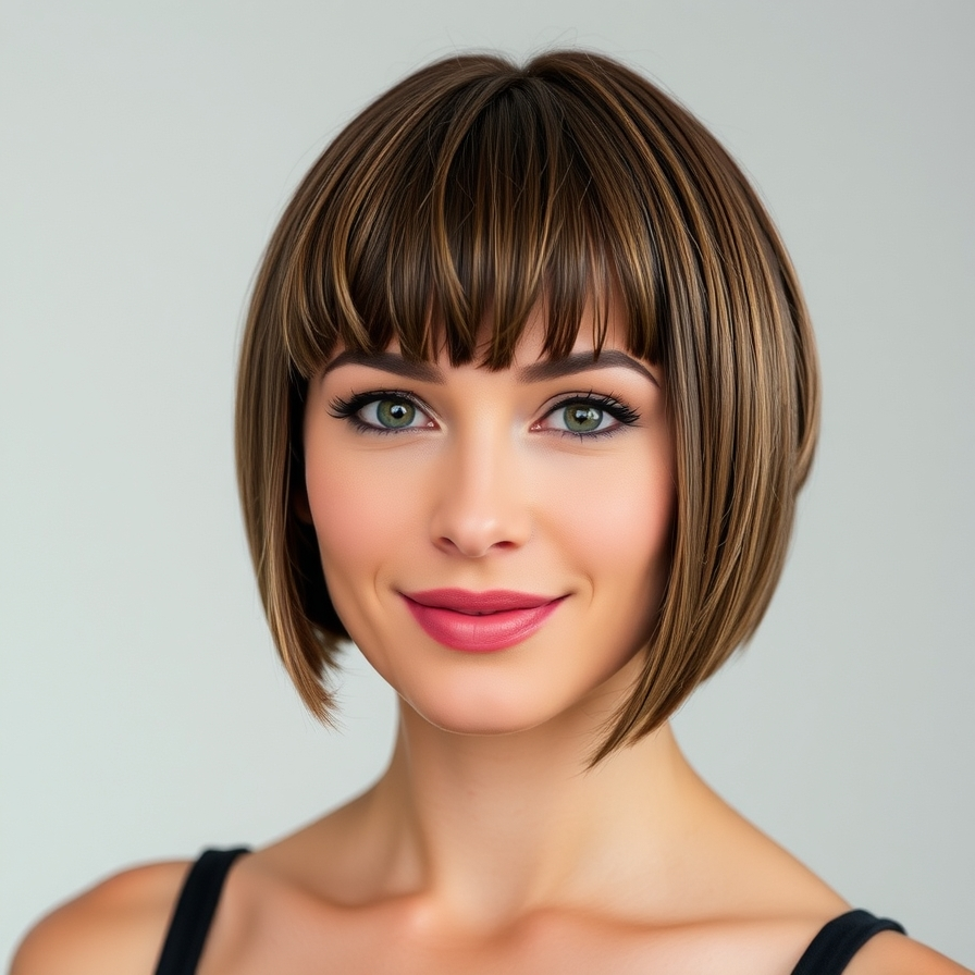 Classic yet versatile, this bob combines layers with straight-across bangs for added texture and fullness. It suits multiple face shapes and hair types, making it a reliable everyday style.