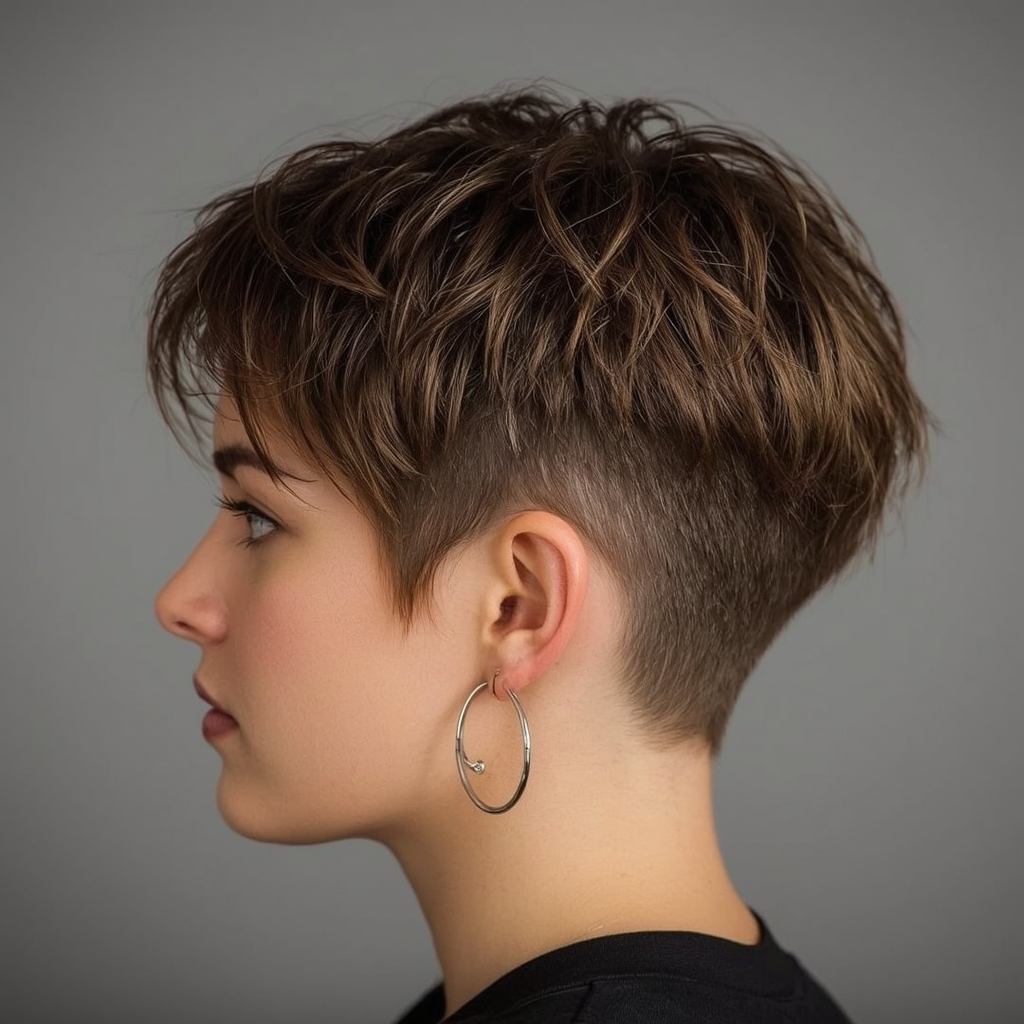 For a bold, rock-inspired look, a choppy pixie with a shaved side is a daring choice. The shaved portion adds drama, while the choppy layers maintain texture and versatility. This cut is ideal for women who enjoy edgy, statement-making hairstyles but also want the convenience of a pixie. Styling options vary from sleek and polished to tousled and casual, providing flexibility without sacrificing boldness.