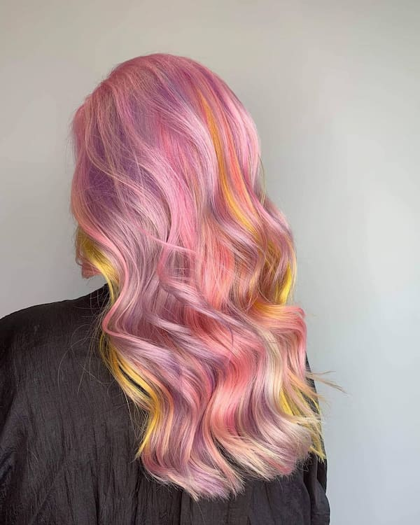 18. Pink and Yellow Glam Haircut