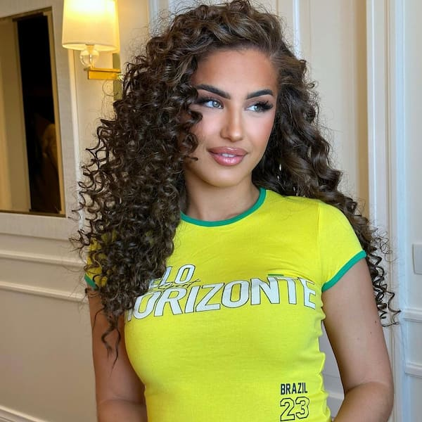Layers in curly hair enhance movement and volume while bangs soften the face. This sleek yet bouncy style works well for both casual and festive occasions, offering versatility while maintaining an effortlessly pretty look.