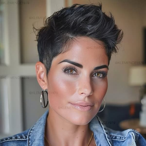 Spiky layers inject energy and playfulness into a pixie cut. It’s slightly rebellious but practical, requiring minimal styling. A small amount of styling wax is all you need to define the spikes, giving your hair a dynamic, effortless look.