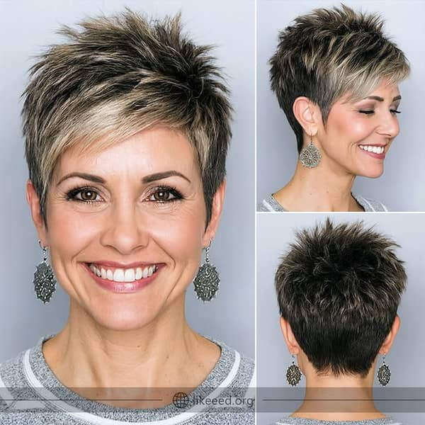 Contrasting tones make the spiky layers pop, enhancing the cut’s boldness. Minimal styling is required—just a dab of wax to lift the spikes—and you have a dynamic, character-filled pixie that turns heads effortlessly.