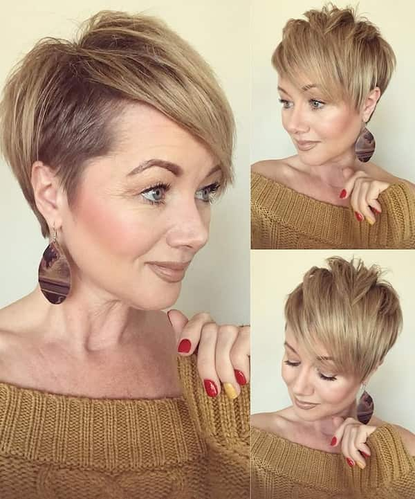 This pixie proves that bold, edgy cuts aren’t just for the young. The shaved sides add contrast, while the top remains stylish and easy to maintain. It’s perfect for older women seeking a low-effort yet fashionable look.