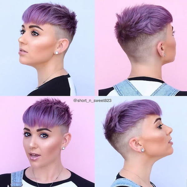Ash Purple Pixie with Shaved Back and Long Side Bangs