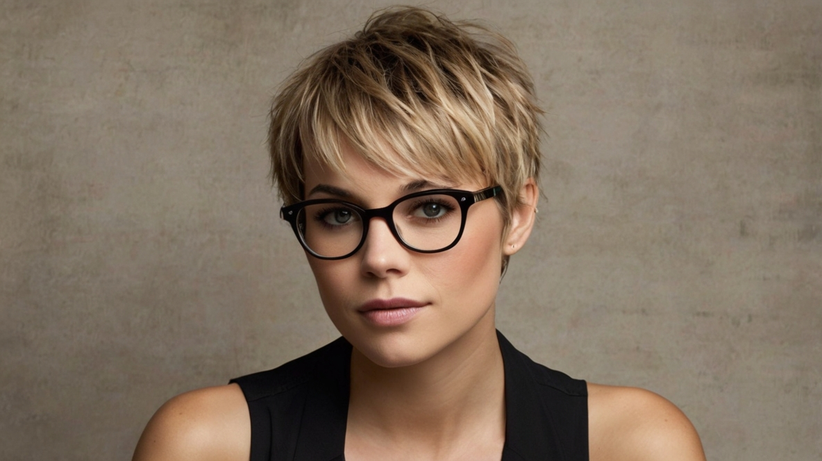 Choppy layers with soft bangs create a playful, artsy pixie. The bangs frame the face beautifully, softening features while adding dimension. This cut is perfect for bold glasses, statement earrings, or creative styling. Minimal styling enhances texture and maintains effortless charm.