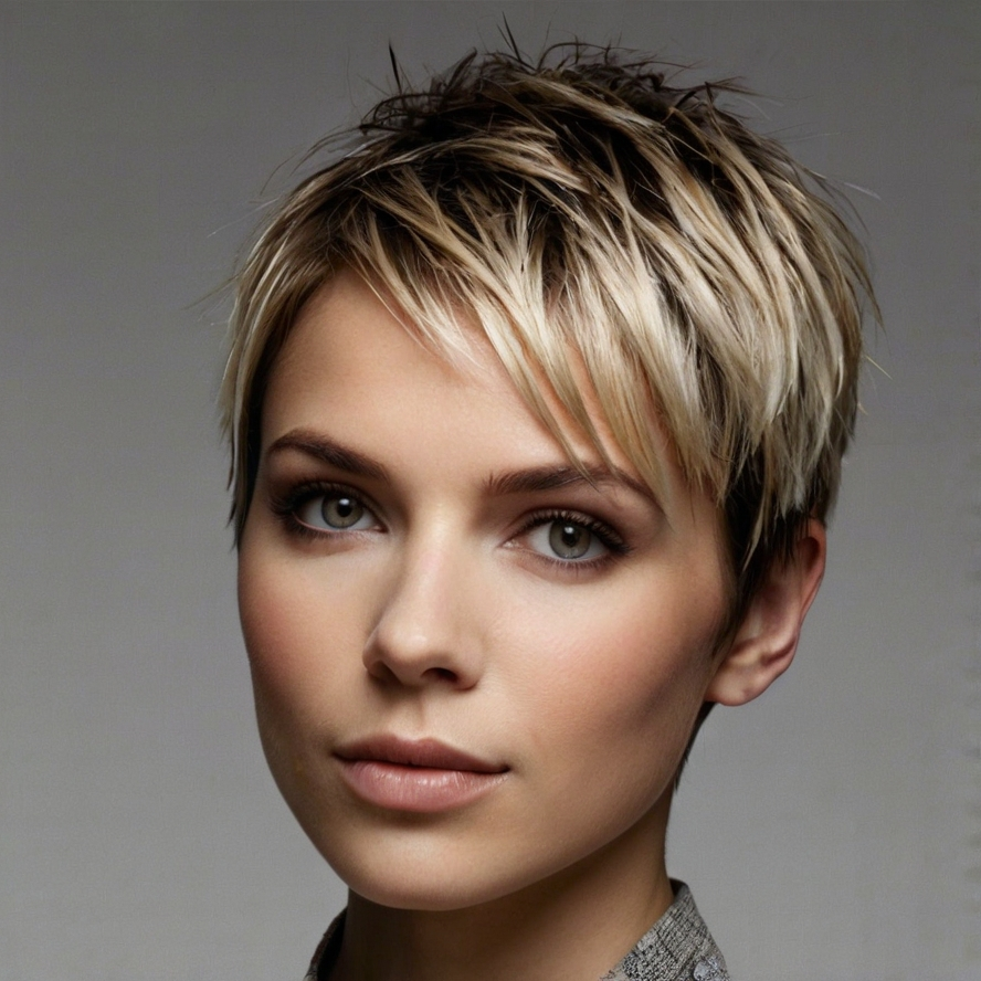 Elegant edgy short pixie cuts are a bold and modern hairstyle that combines sophistication with a playful, fashion-forward edge. These pixies typically feature short, textured layers, asymmetrical cuts, or choppy ends that add volume, movement, and personality to the look. Sleek styling can create a polished, refined finish, while tousled textures offer a relaxed, effortless vibe.