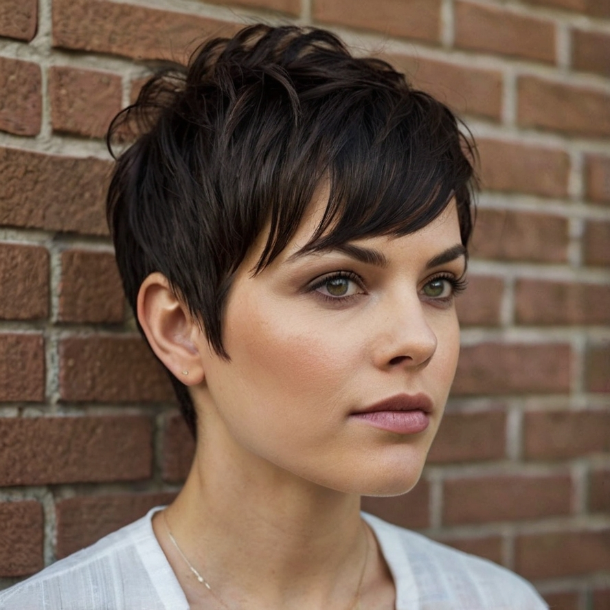 The edgy undercut pixie with long side bangs is a perfect fusion of boldness and elegance. Shaved sides contrast with soft sweeping bangs for a feminine yet striking appearance. Styling is minimal, and the cut works for adventurous women who want to express individuality without sacrificing sophistication.