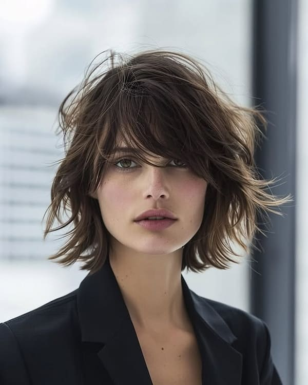 This bob is low-maintenance but still eye-catching. The texture allows for multiple styling options, from smooth and refined to playful and messy. Whether you’re heading to work or going out for a casual evening, the brunette textured bob adapts effortlessly. Its simplicity is its strength, providing a chic, modern look without requiring elaborate styling techniques.