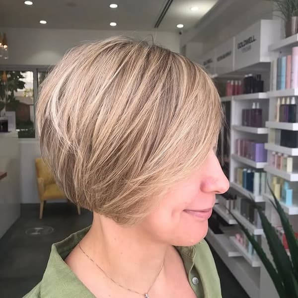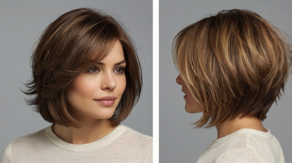 Styling options are versatile: a light mousse or texturizing spray can boost volume, while gentle finger-combing maintains the soft, airy quality of the layers. The cut can also be paired with subtle highlights to create depth and movement. Overall, this bob provides a practical solution for fine hair, combining style, ease, and volume in one flattering package.