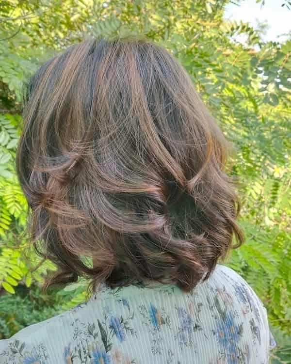 A feathered shaggy bob exudes a carefree and relaxed energy. The layers are intentionally tousled to give the hair a slightly messy, lived-in look. Minimal styling is needed; simply applying mousse and using fingers to arrange the layers maintains the effortless charm.