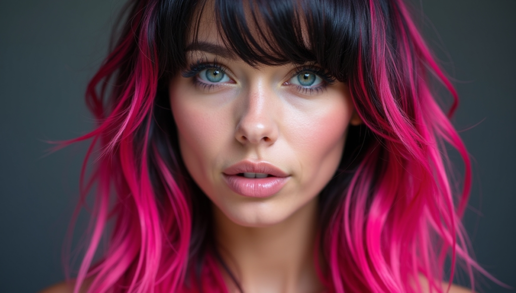 Infuse energy and creativity with hot pink highlights layered over a black or caramel base. The vibrant streaks emphasize textured layers and give a punk-inspired, playful vibe. Applied strategically, these highlights create movement and depth, framing the face with dramatic flair. Using high-quality pink dyes preserves saturation and shine, while color-protecting sprays extend vibrancy. This bold style is ideal for those seeking an expressive, edgy aesthetic that balances creativity with wearable sophistication.