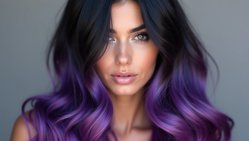 Create a mystical, seamless transition from jet black to vibrant violet. The gradient adds depth and movement to long hair while highlighting silky waves. Subtle purple tones enhance pale skin and make eyes pop without overpowering the overall look. Professional violet dyes ensure longevity and smooth blending, producing a polished, ethereal effect. Perfect for those seeking a whimsical yet sophisticated style, this fade combines soft fantasy hues with modern elegance, making it a striking, wearable statement for all occasions.