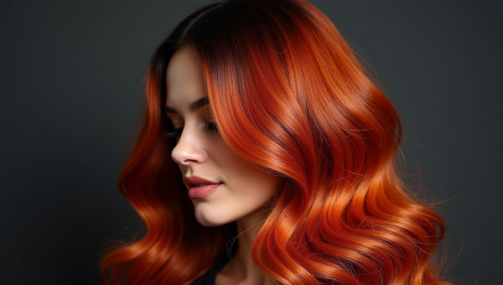 Ignite hair with fiery copper tones applied over a deep black base. The bold contrast creates dynamic intensity reminiscent of autumn hues, enhancing movement and shine. Voluminous layers and textured waves bring depth and vibrancy to the style. Using professional copper dyes ensures long-lasting, luminous color without fading. Perfect for statement-making hairstyles, this look combines warmth, drama, and energy, providing a bold, modern, and eye-catching transformation for individuals seeking maximum impact.