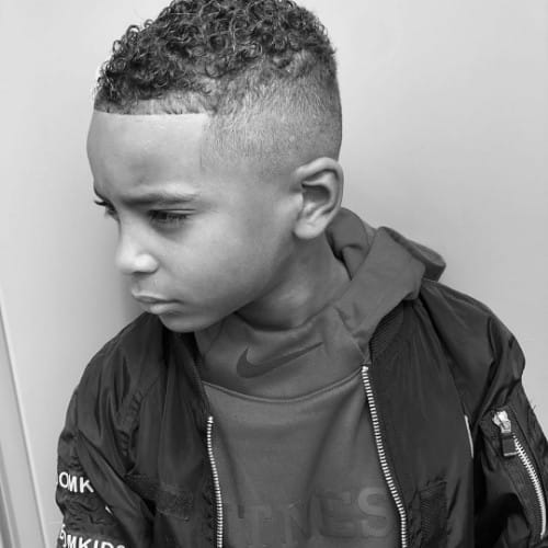 The buzz fade undercut is a classic and versatile hairstyle that works on nearly all hair types, including curly textures. The fade gradually tapers the sides while keeping some length on top for styling. Adding a touch of texture or curls to the upper portion allows the haircut to remain playful and contemporary. This style is particularly practical for older kids who need a low-maintenance haircut but still want to look stylish, as it requires minimal styling effort beyond the initial cut.