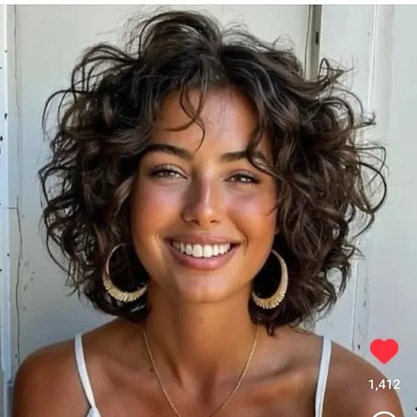 Loose Curly Bob for Women with Full Faces