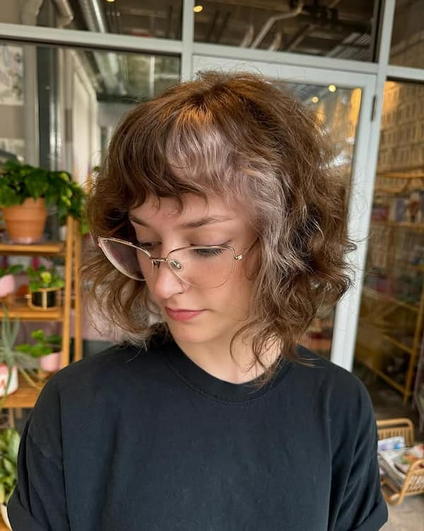 Mixed-Tone Curly Bob with Bangs