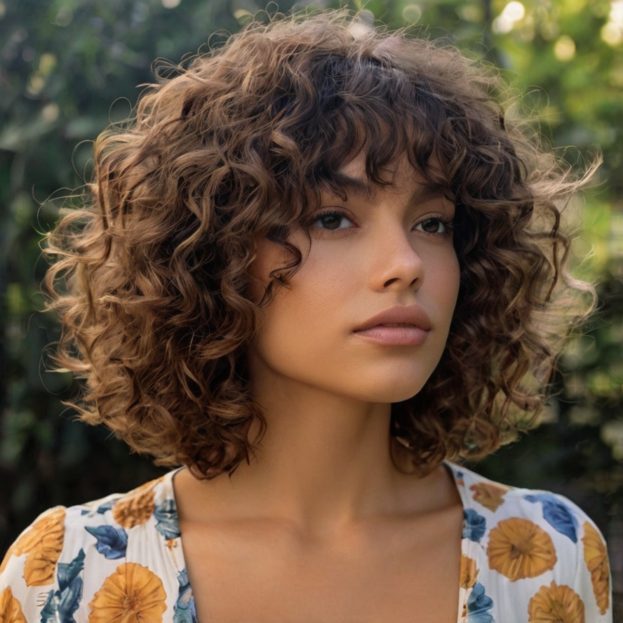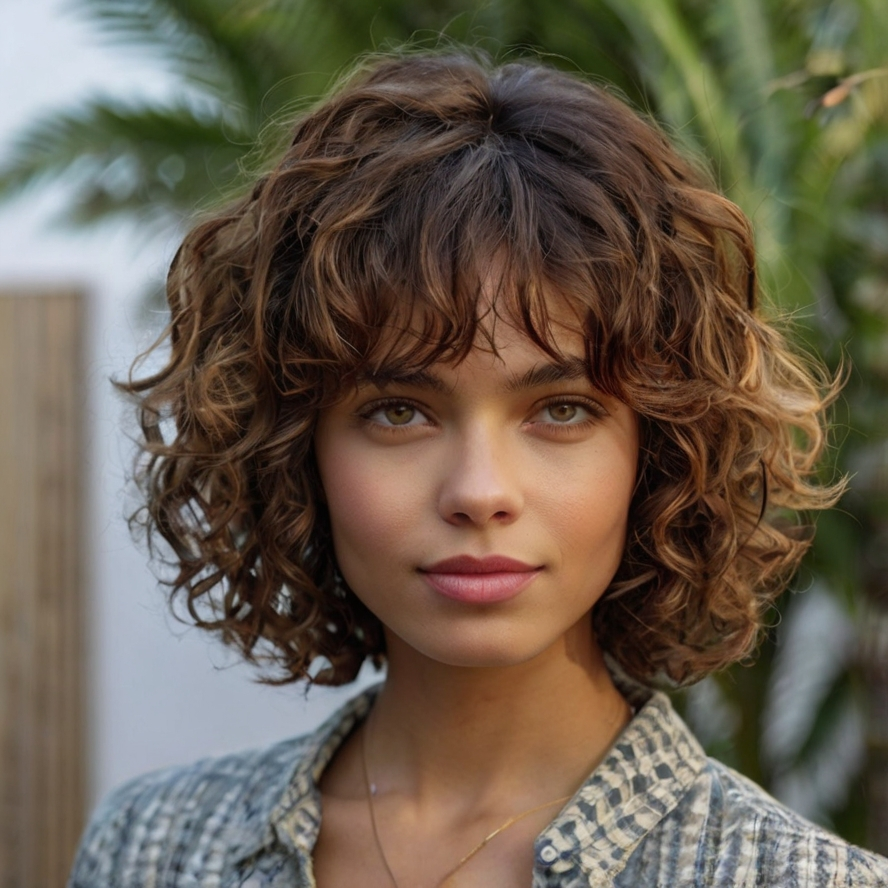 Summer Curly Bob with Choppy Bangs