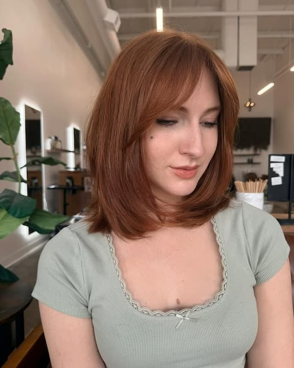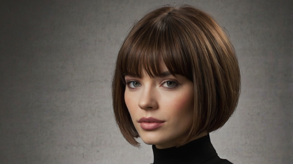 It’s particularly flattering on heart-shaped and oval faces, as the bangs soften the forehead and frame facial features. Styling can range from tousled and carefree to sleek and polished, making it a versatile choice for both casual and formal occasions.