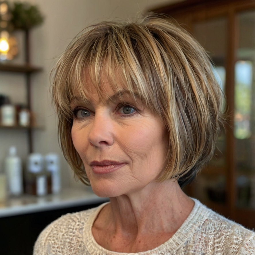 Choppy Layered Bob and Bangs for Women Over 50