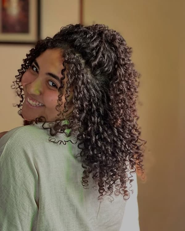 Perfect for weddings, office days, or casual occasions, this style pulls the top section of curls back while letting the rest cascade freely. It’s easy to achieve with hairpins or a small claw clip. Add a touch of volumizing mousse for extra body and a spritz of hairspray to keep everything in place without losing movement.