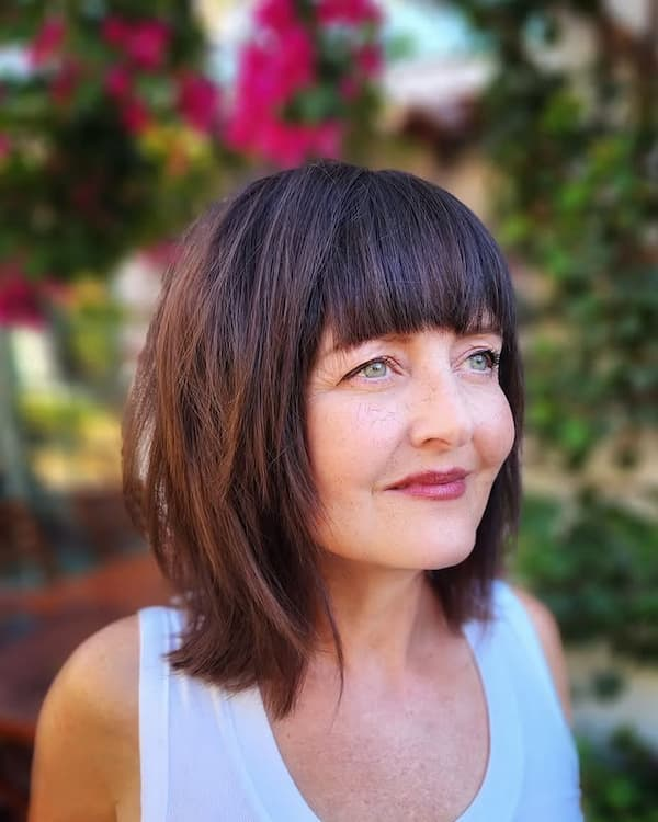Combining volume with sleekness, the layered bob with choppy bangs and blow-out ends is perfect for adding movement. This cut works exceptionally well for women over 40, giving hair bounce while softening facial features. Blow-drying the ends outward adds a polished, sophisticated finish. Light styling products maintain volume without weighing the hair down, making this cut both practical and elegant.