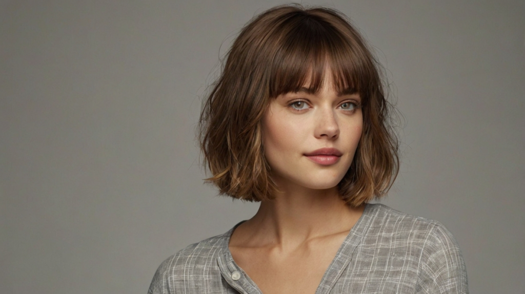 Adding bangs, whether wispy, side-swept, or blunt, instantly softens facial features and draws attention to the eyes and cheekbones. This combination works well on straight, wavy, or slightly curly hair, and can be customized with layers, subtle highlights, or textured ends for added movement and dimension.