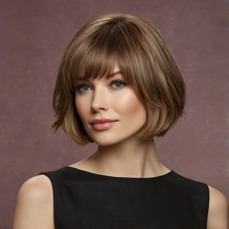 Bold and structured, the blunt bob with full bangs adds definition and charm to the face. It works particularly well for square face shapes, balancing angles while creating a polished look. Full bangs provide a youthful, edgy element, while the straight bob maintains elegance. Styling is minimal with a flat iron and smoothing serum, making it suitable for office, evening events, or casual occasions. This haircut is a confident choice for women seeking a modern, statement-making style.