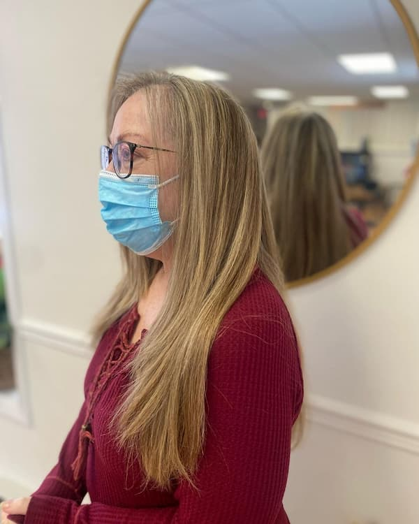Dimensional haircuts with long blonde layers provide natural depth without heavy styling. Straightening the hair enhances shine and smoothness, while asymmetrical partings add modern elegance. This style proves that minimalism can still create a glamorous, age-appropriate appearance. It’s perfect for older women looking to showcase length and texture while maintaining a professional or refined aesthetic.