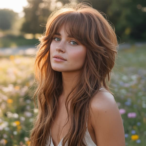 Sun-Kissed Summer Shag with Wispy Bangs